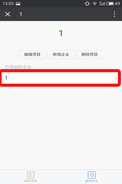 在项目中找到你要编辑的企业,如果没有企业可点击新增企业
