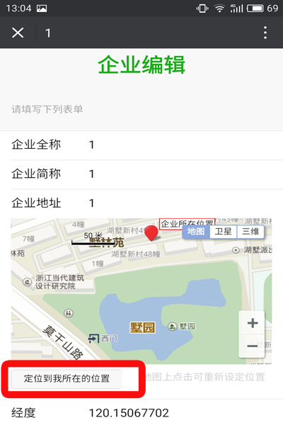 点击“定位到我所在的位置”,获取地图正确位置和经纬度数据后,点击编辑并保存